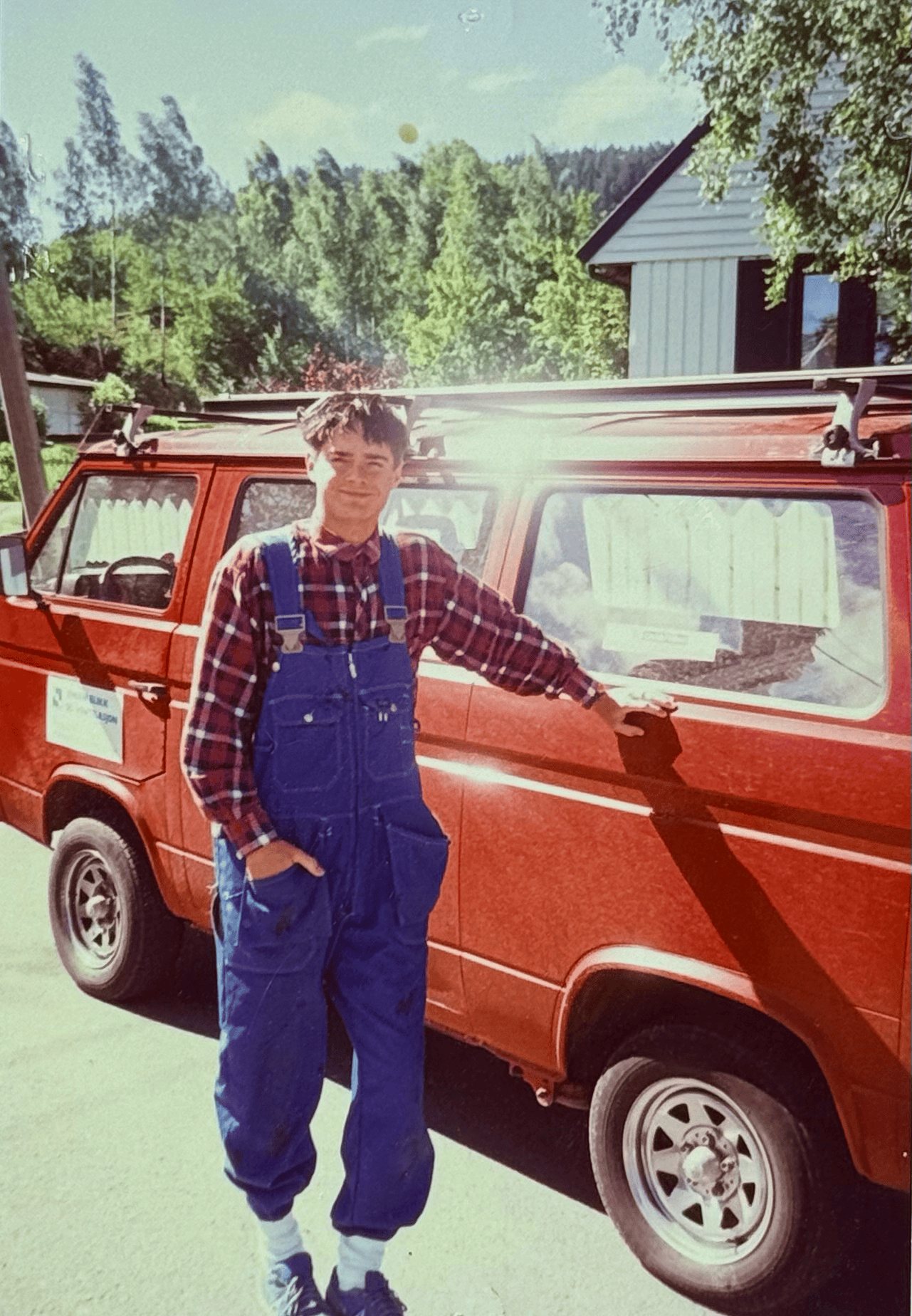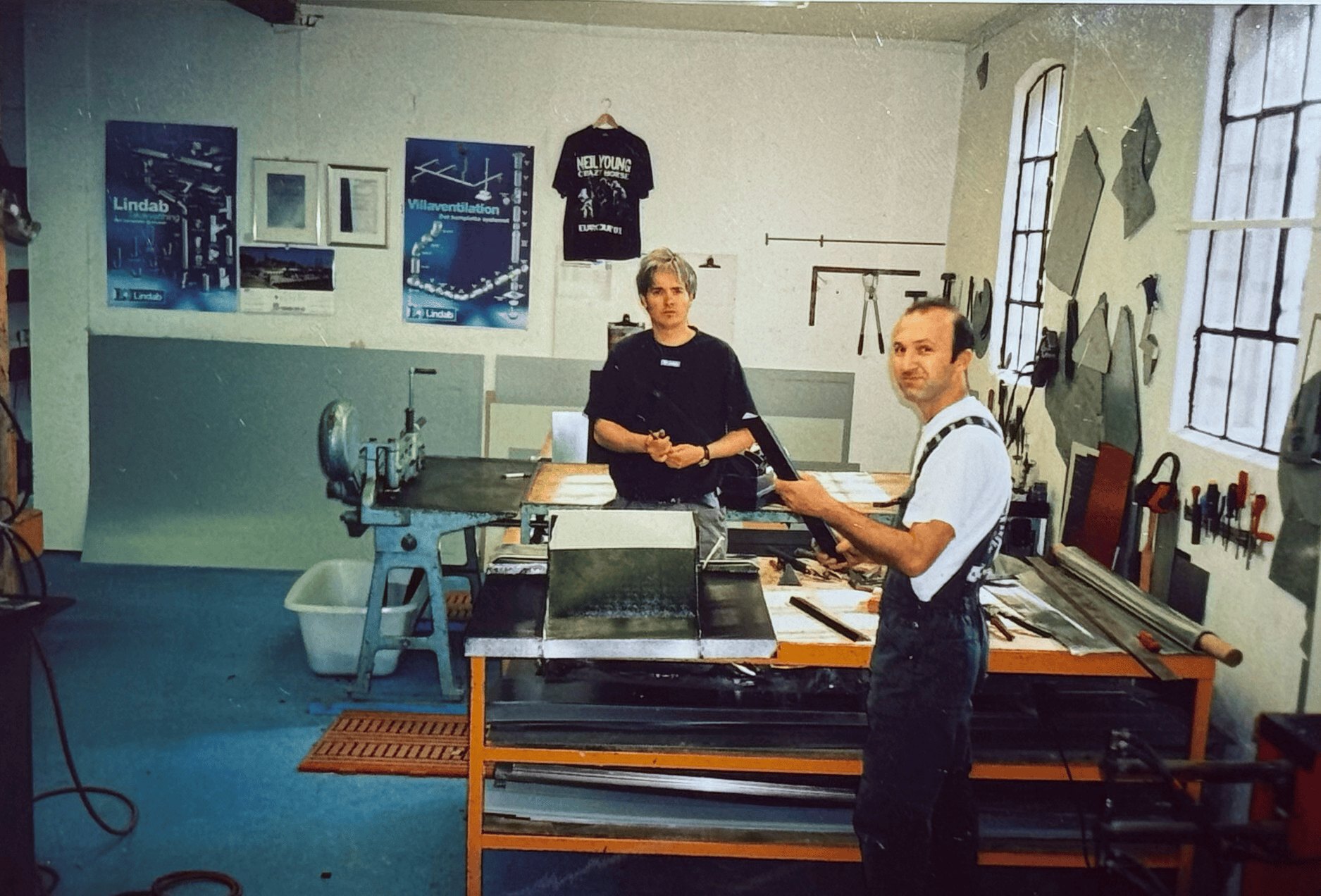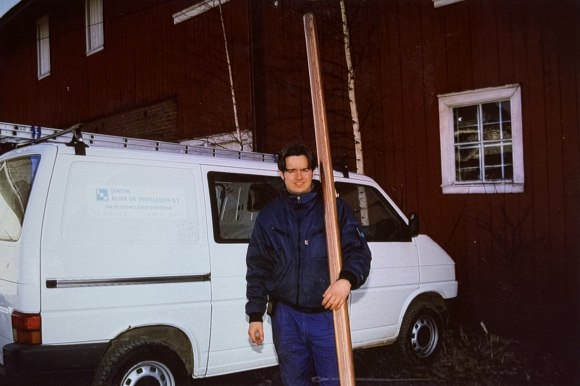 Historien om Jensen Blikk og Ventilasjon AS startet med bestefar Finn Jensen, som la grunnlaget gjennom sveising og tradisjonelt blikkenslagerarbeid. Han bygde opp virksomheten med solide verdier, faglig stolthet og et godt rykte i lokalmiljøet. Bildet fra 1988